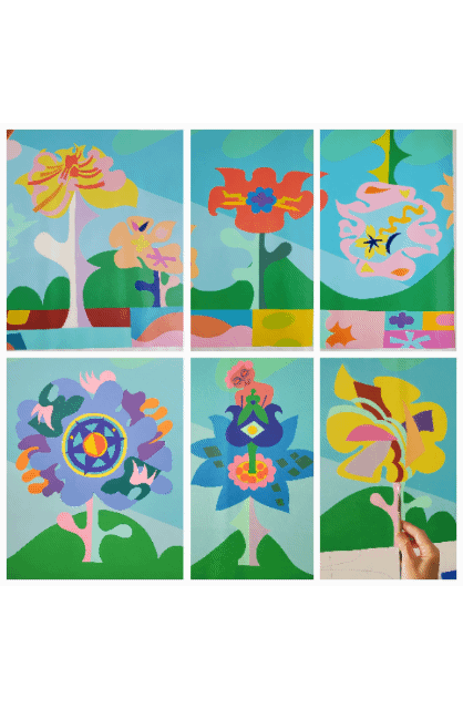 Here to Grow Free, Bouquet Play - (9), 14 x 11 in. Acrylic and collage on canvas, 2025